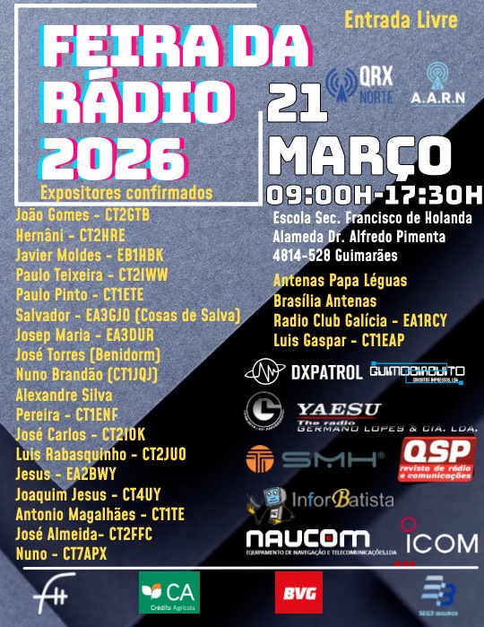 O QRXNorte tem o prazer de o convidar para fazer parte do nosso próximo evento, "Feira Rádio QRXNorte/AARN 2026", (que este ano se associou à A.A.R.N para o evento).